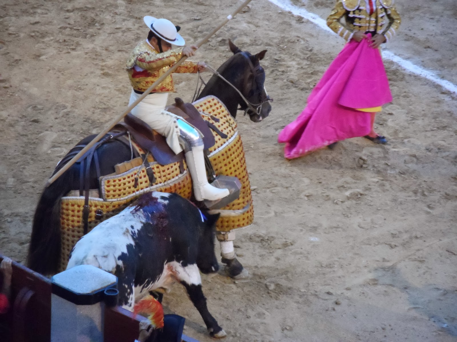 Antonio Ferrera fue el que se benefició. Fue la suya una tarde en la que tal como acostumbra últimamente estuvo inpecable como director de lidia y con nociones de buen lidiador en el primer tercio, atento fuera de sus turnos de lidia siempre de los caballos de picar para que no fueran sorprendidos por el toro fuera de contraquerencia, sujetando a sus toros sin darles un solo capotazo ni hacerlis derrotar contra el burladero mientras su picador se colocaba en el sitio, dejando a los toros bien en suerte y ordenando correctamente a su picador que ocupara el sitio donde hay que picar, atento siempre a los quites y a los compañeros... En definitiva, algo de lo que todos los que se ponen el vestido de luces deberían tomar buena nota. Pero hasta ahí, porque cuando coge las banderillas la plaza se convierte en un circo que recuerda al que en fechas invernales se coloca en ese mismo ruedo, de la misma manera que cuando coge la muleta y deja claro que no pasa de ser un mediocre muletero que no es capaz de colocarse en el sitio y rematar los muletazos como mandan los cánones.